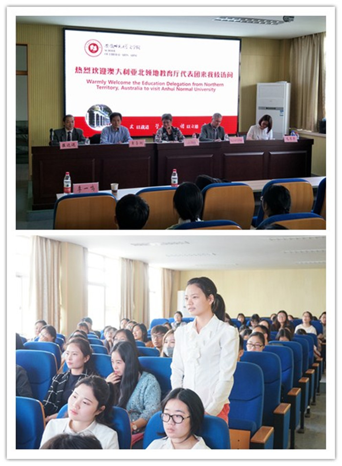 薇基·贝丽思向王伦介绍了北领地的概况。她说,安师大和位于北领地首府的达尔文大学已经建立的孔子学院运行良好,师资往来互动频繁,在北领地乃至整个澳大利亚也产生了积极的文化效应。薇基·贝丽思介绍说,北领地是澳大利亚多元文化最集中的地区,当地有华人血统、华裔背景的人口众多。目前,北领地教育厅正致力培养有跨文化交流能力的新一代学生,尤其要增强他们对中国文化的了解和汉语的交际使用能力。代表团此次来访的主要目的是落实汉语志愿者项目。在汉办和省教育厅的大力支持下,北领地教育厅计划在未来的5年内,每年从安师大招募4个汉语志愿者,赴北领地进行汉语教学工作。