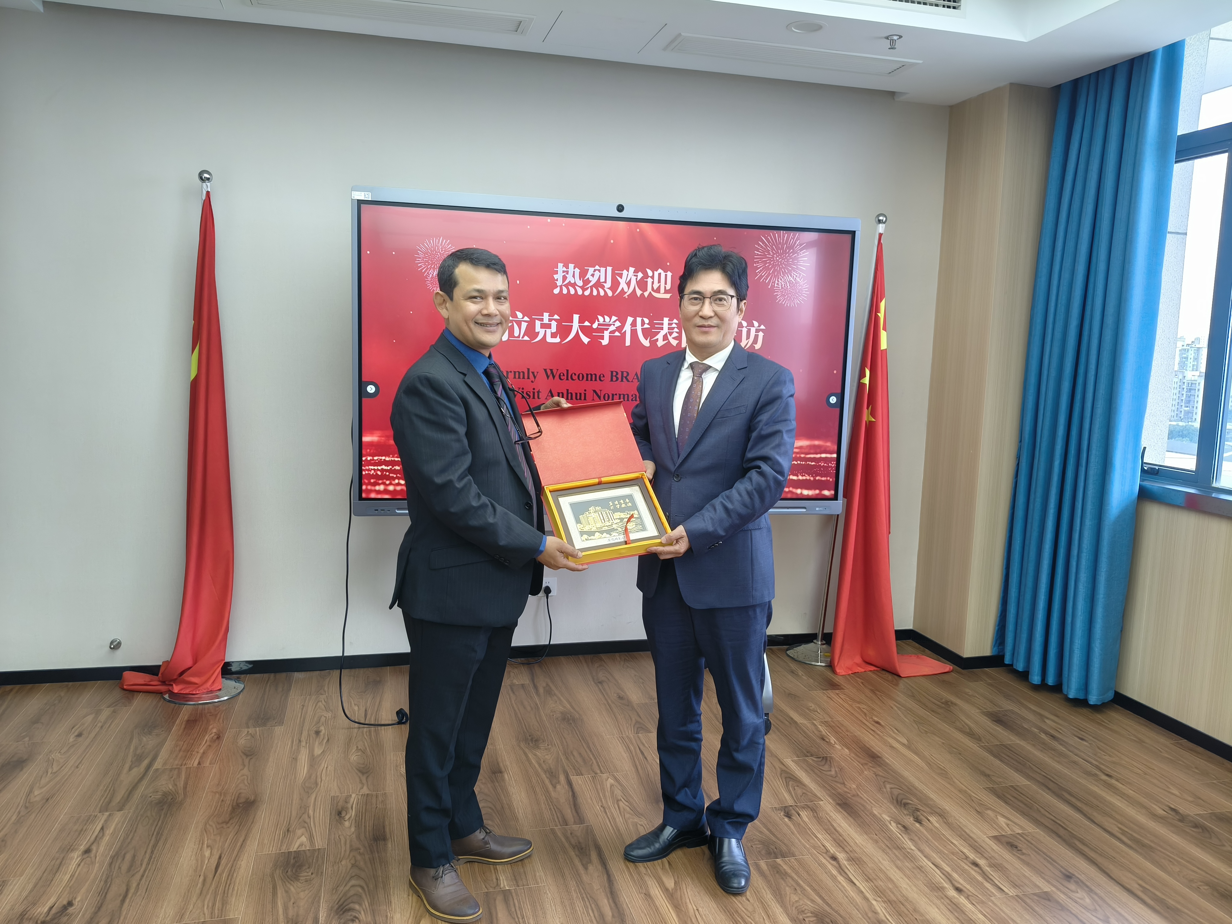 布拉克大学代表团团长阿里富尔·伊斯兰先生高度评价安徽师范大学的科研实力与国际化办学成果。他表示,布拉克大学十分重视与中国高校的合作,此次来访是一个很好的契机,商讨和推动双方科研领域的合作。这不仅将提升学校的科研创新能力,也将为孟加拉国相关产业发展提供技术支撑。他期待双方整合优势资源,在科研合作项目规划、人才联合培养、科研设备共享等方面尽快达成具体合作方案,推动合作项目早日落地见效。