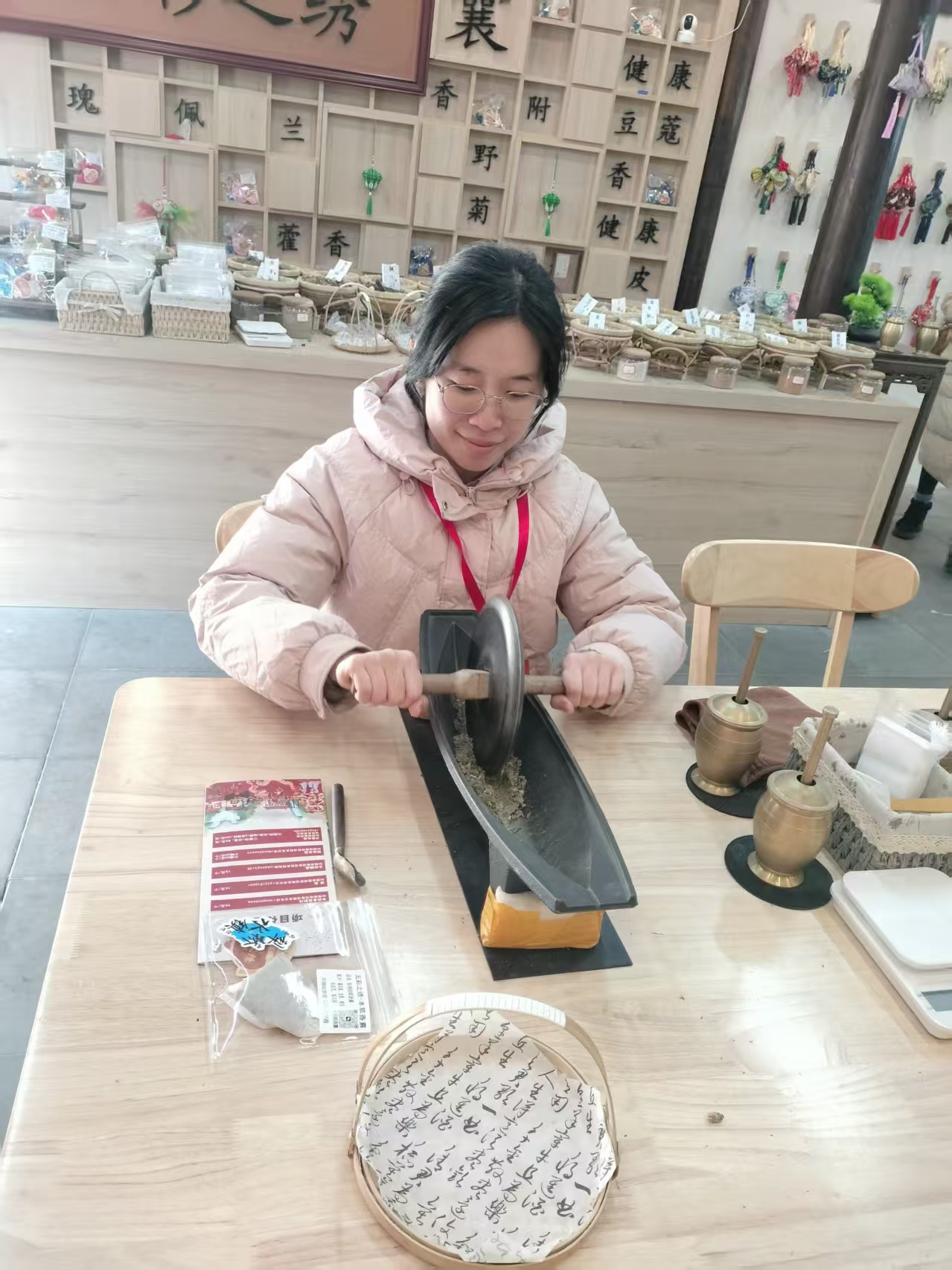 活动现场,中外友人赏民俗、品年味、话友谊,在欢声笑语中拉近彼此距离,在文化交融中凝聚合作共识。全球重要农业文化遗产铜陵白姜香飘满径,甘醇滋味萦绕舌尖;省级非遗枞阳腔婉转悠扬,笛子伴奏与俚语唱腔交融,将千年乡韵娓娓道来。外籍友人亲手体验铜拓版画制作,以铜为纸、以锤为笔,在叮叮当当的敲击声中,将“马上赚钱”的美好寓意拓印成独特伴手礼。舞龙、川剧变脸等充满年味的联谊节目汇演,吸引了在皖外籍人士和港澳同胞的浓烈兴趣,大家还在梨桥水镇小吃街品尝了安徽多种特色美味小吃。我校外籍师生也纷纷穿上汉服在现场体验了剪纸、书法、茶艺、雕刻等非遗展演,更是亲手制作了香囊。