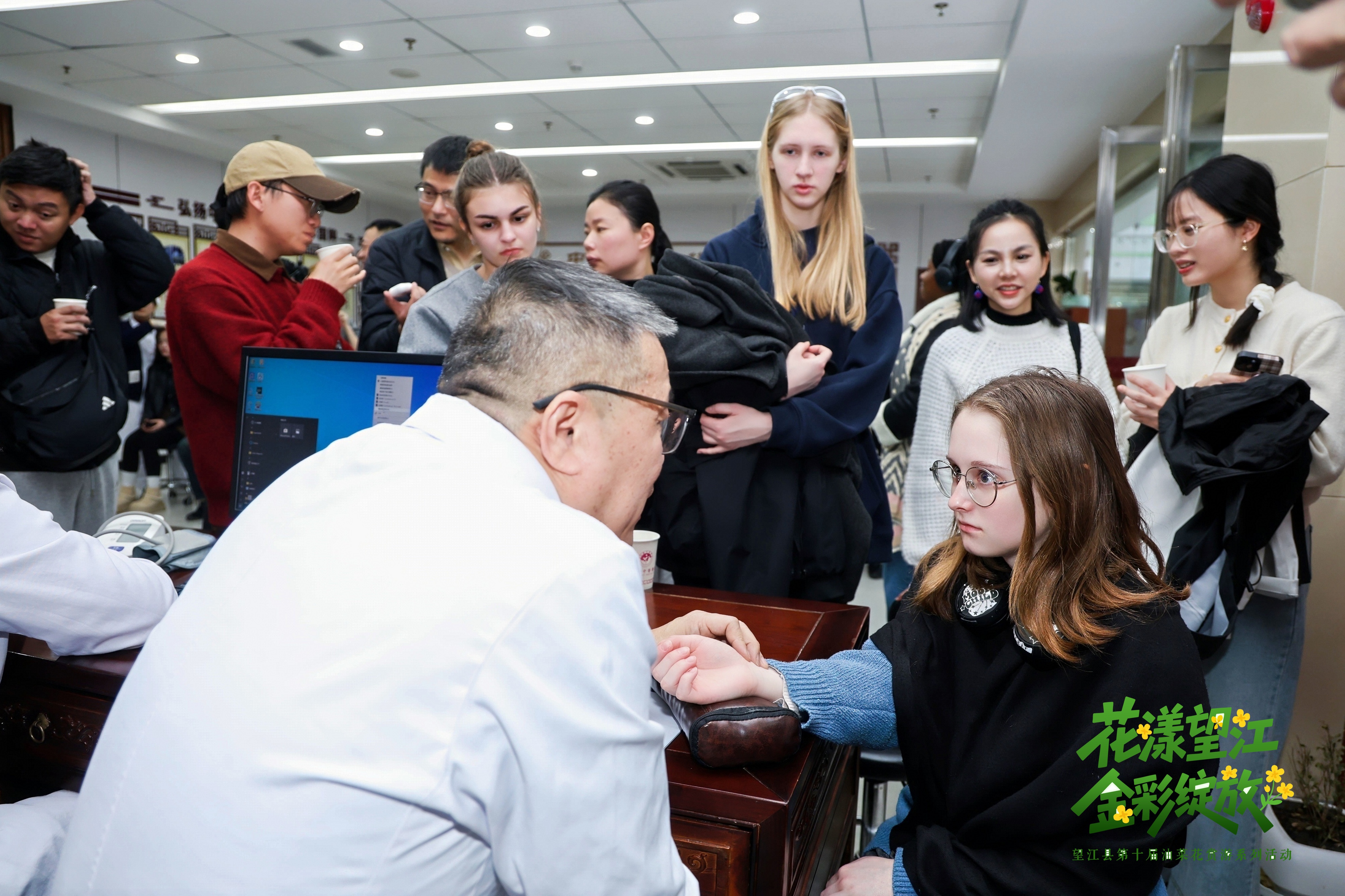 活动期间,学院与望江县共同举行了来华留学生文化体验基地揭牌仪式,望江县副县长王小节与学院直属党支部书记、院长杨一飞共同为基地揭牌。该基地的建立将为国际学生深入了解望江地方文化、体验非物质文化遗产提供长期平台。随后,留学生们观看了当地特色文艺演出,欣赏了歌伴舞《凤起岚杆湖》、黄梅戏《太阳山上风光好》等节目,感受浓郁的地方艺术氛围。在望江挑花专业合作社,同学们在非遗传承人的指导下,亲手体验了国家级非物质文化遗产——望江挑花的制作工艺,一针一线间感受传统技艺的精妙。在县黄梅戏研究中心,留学生们学唱黄梅戏经典唱段,在戏曲老师的指导下练习唱腔与身段,现场气氛热烈。此外,同学们还走进望江县中医医院,体验针灸、推拿、把脉等中医传统诊疗方法,品尝药食同源古方茶,近距离感受中医药文化的独特魅力。